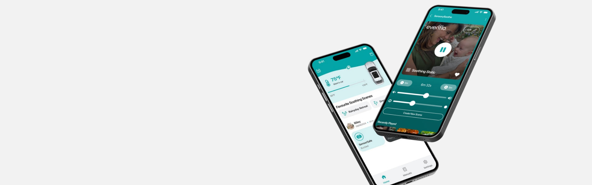 Accessible through the Evenflo® app, SensorySoothe™ technology calms and mesmerizes your little one at a moment’s notice. Right from your phone, you can cue a captivating light show, create a calming space with nature sounds or play a favorite lullaby.